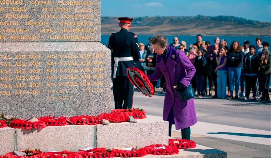 La Princesa británica llegó el viernes pasado junto a su esposo, el vicealmirante Tim Laurence, a las Islas Malvinas, por indicación de su hermano, el rey Carlos III. Según lo previsto, permanecerá unos seis días en Malvinas en el marco de una visita oficial durante la cual se reunió con la gobernadora de las islas, Alison Blake, con integrantes de la asamblea legislativa y colocó una corona de flores en el llamado Monumento de la Liberación en Puerto Argentino para conmemorar el 40 aniversario del fin del conflicto de 1982, según difundió la corona británica a través de las redes sociales.