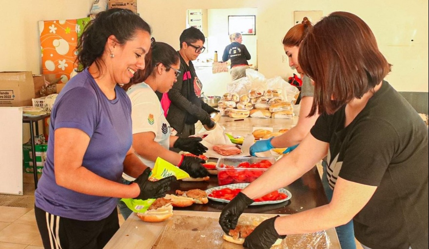 Luego del trabajo de acondicionamiento en el Polideportivo Ezequiel Rivero, el Municipio a través de un grupo de trabajadores y trabajadoras voluntarias lleva adelante la asistencia y logística para la estadía de los brigadistas locales y nacionales convocados a combatir el incendio en la reserva provincial Corazón de la Isla.