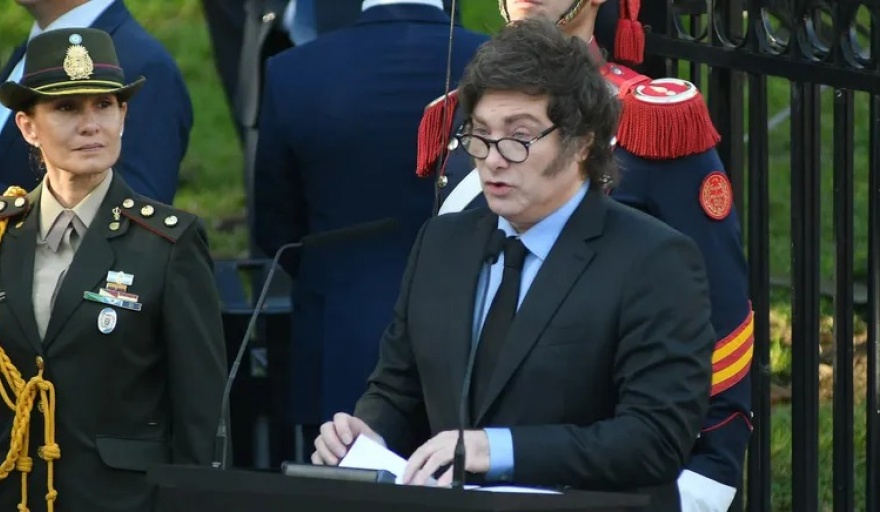 "Anhelamos que los malvinenses decidan algún día votarnos con los pies a nosotros. Por eso buscamos hacer de Argentina una potencia tal que ellos prefieran ser argentinos", dijo Milei durante el acto oficial en la Plaza San Martín.