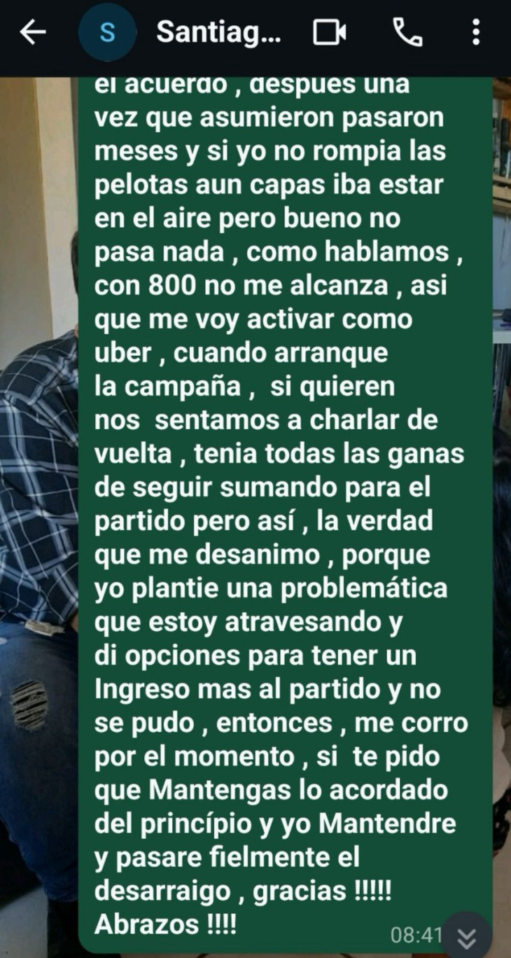 Comprobado que los asesores del legislador Agustín Coto debían transferir su adicional por desarraigo, $500.000 mensuales, a Martín Agüero, el "Cajero partidario" que es asesor de Santiago Pauli en la Cámara de Diputados.