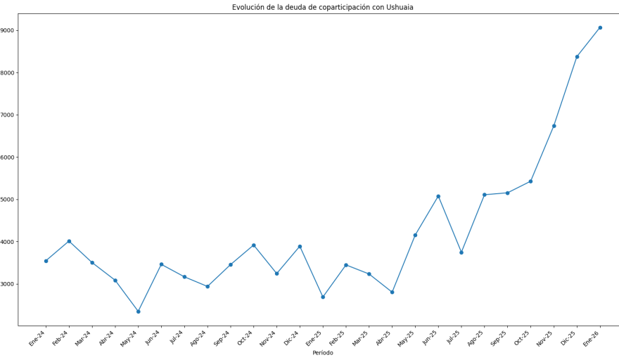 La información correspondiente a enero de 2026 profundiza esa tendencia. En ese mes, la deuda de coparticipación con Ushuaia superó los 9.000 millones de pesos, mientras que los días de demora se ubicaron por encima de los 28. Se trata del valor más alto de toda la serie y refleja que el atraso en los pagos no solo persiste, sino que sigue acumulándose.