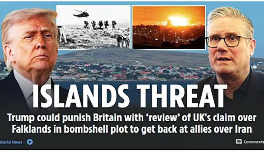 “Amenaza en las islas”, dice el titular de portada del conocido diario The Sun. “Trump podría castigar a Gran Bretaña” en “un complot explosivo para vengarse de sus aliados por Irán”, tituló el periódico.