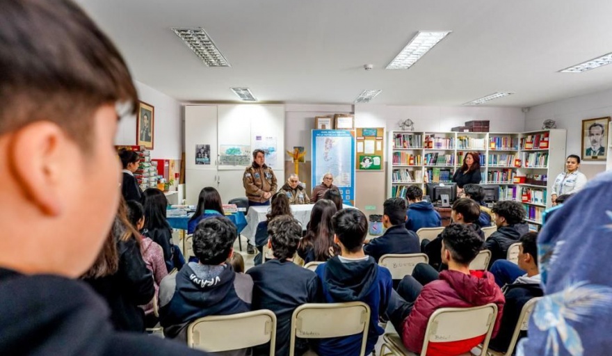 La Municipalidad de Ushuaia junto al Centro de Ex combatientes visitaron la comunidad educativa del Colegio José Martí, para compartir una charla informativa y realizar un análisis de la causa Malvinas, en el marco del 40° Aniversario de la Gesta.