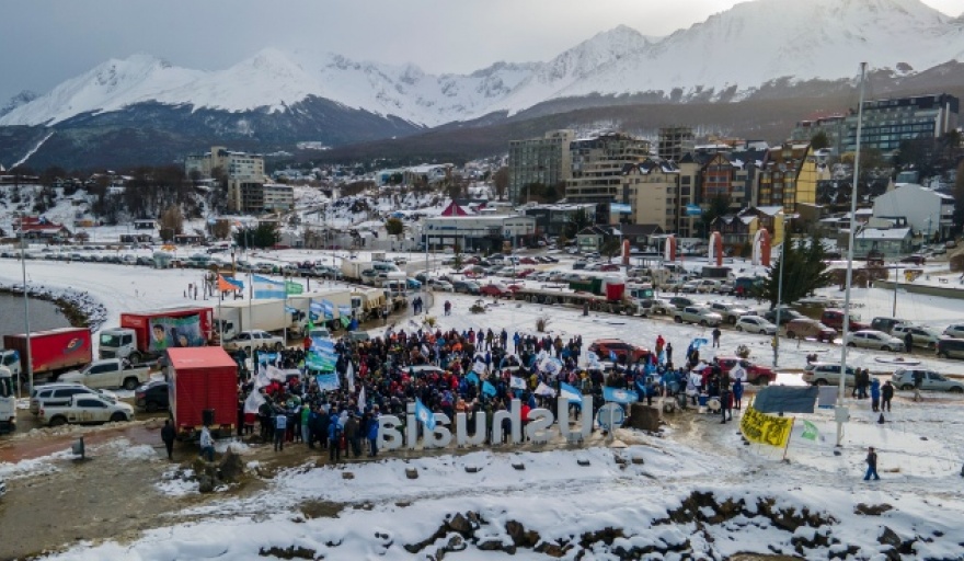 En Ushuaia, la capital provincial, cientos de militantes políticos pertenecientes a agrupaciones como La Cámpora y el Partido Justicialista (PJ), además de decenas de sindicatos nucleados en la Confederación General del Trabajo (CGT), se congregaron a orillas del Canal Beagle, frente al cartel con el nombre de la ciudad y la plaza Islas Malvinas.